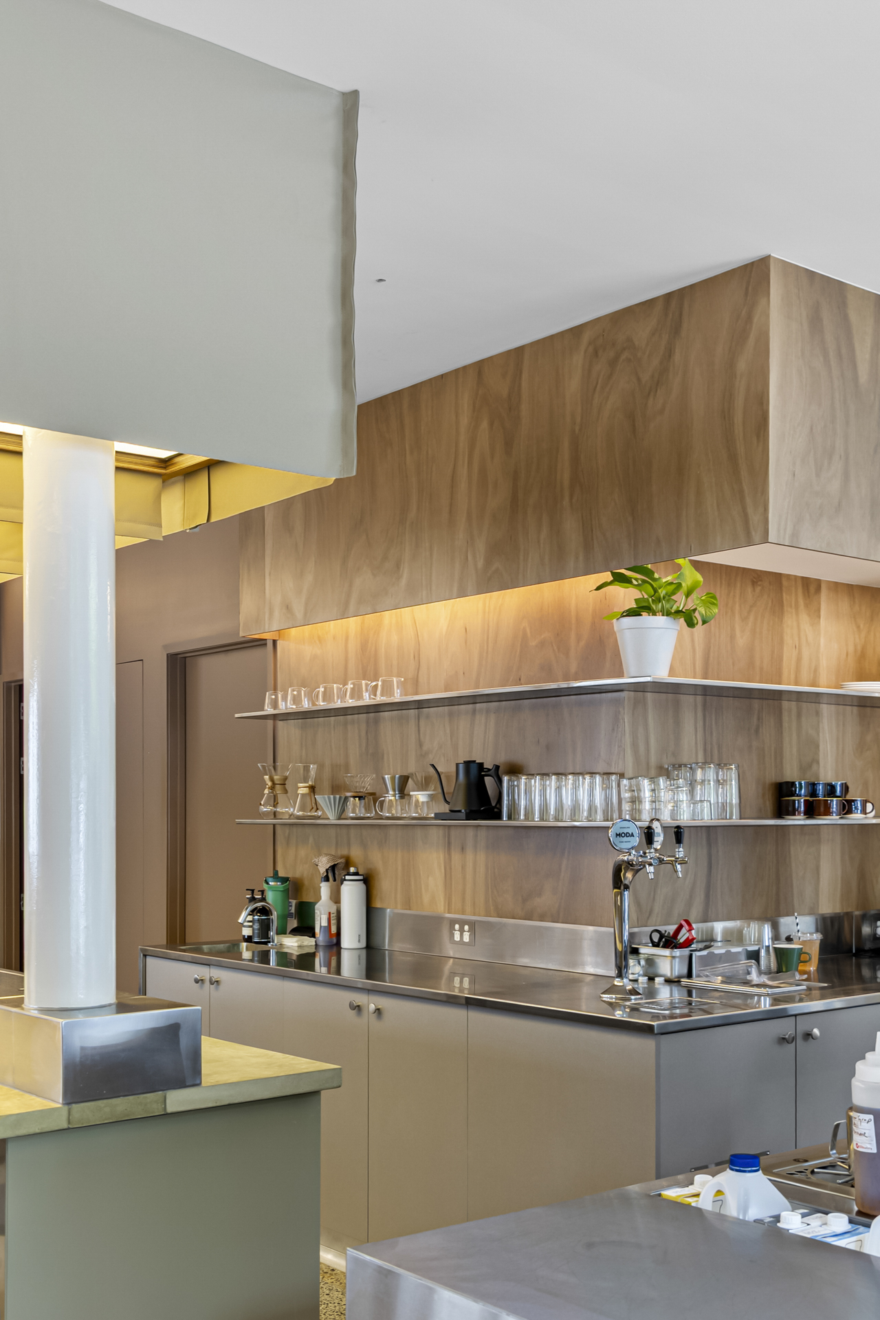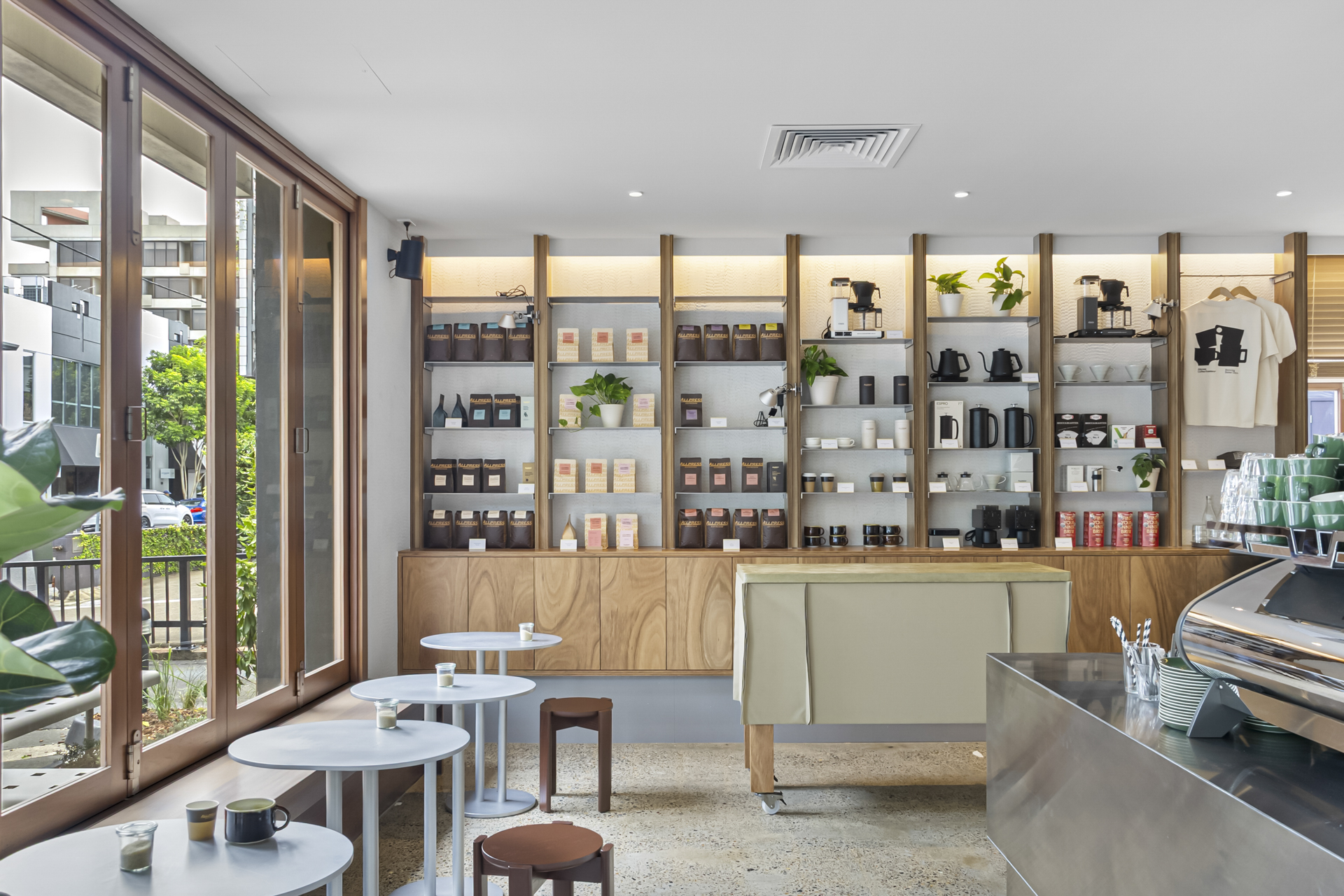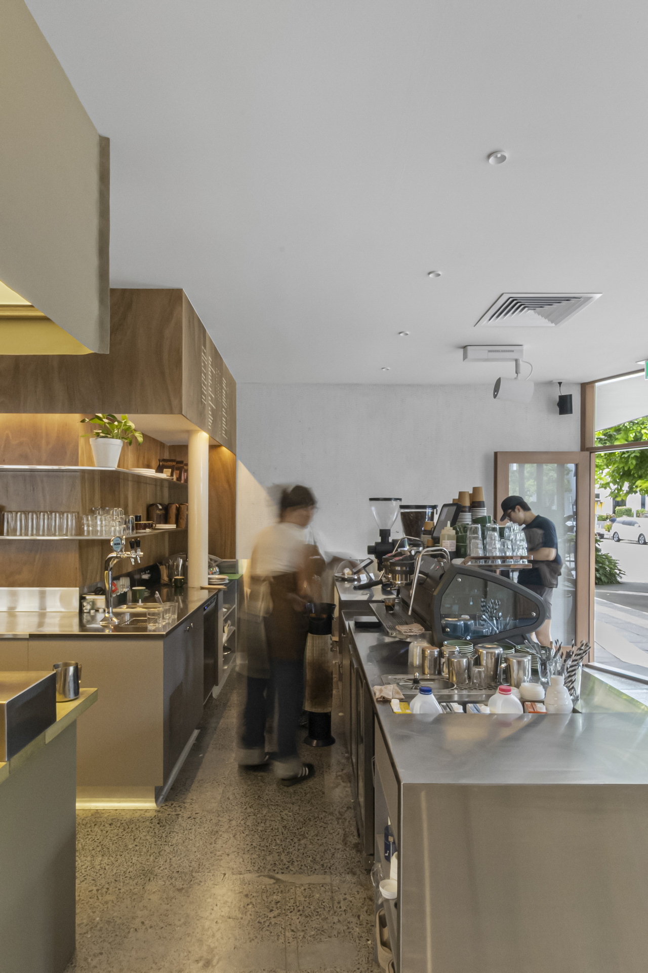 Brisbane's latest espresso bar, located on Robertson Street, makes the most of Brisbane's sunny weather, with large bifold windows that provide natural light and air to the space. The fitout is complemented by the meticulously crafted custom stainless steel counter and joinery throughout, with a main focal point of the venue being a pour-over bar and a low-set timber bench for relaxing.