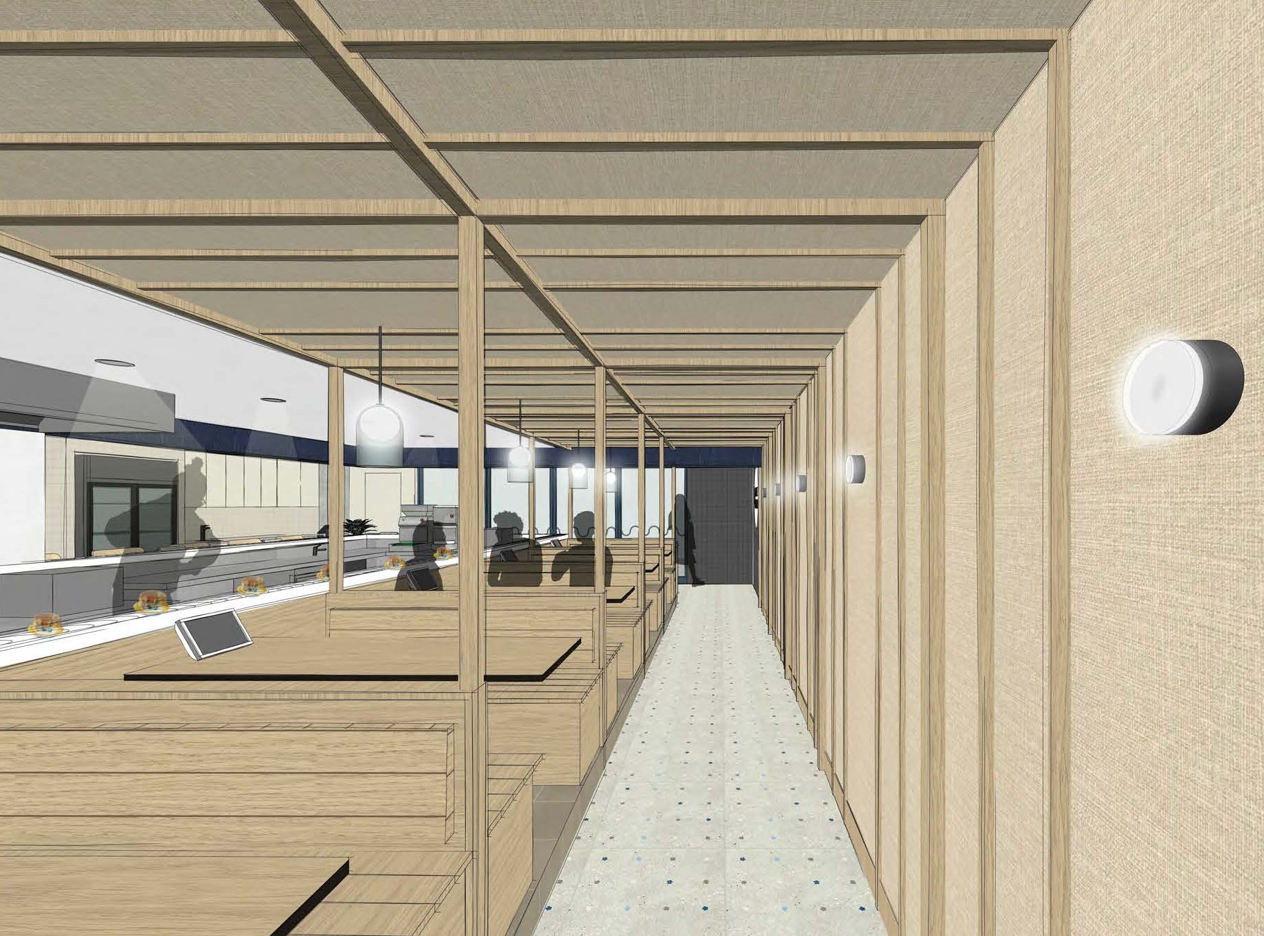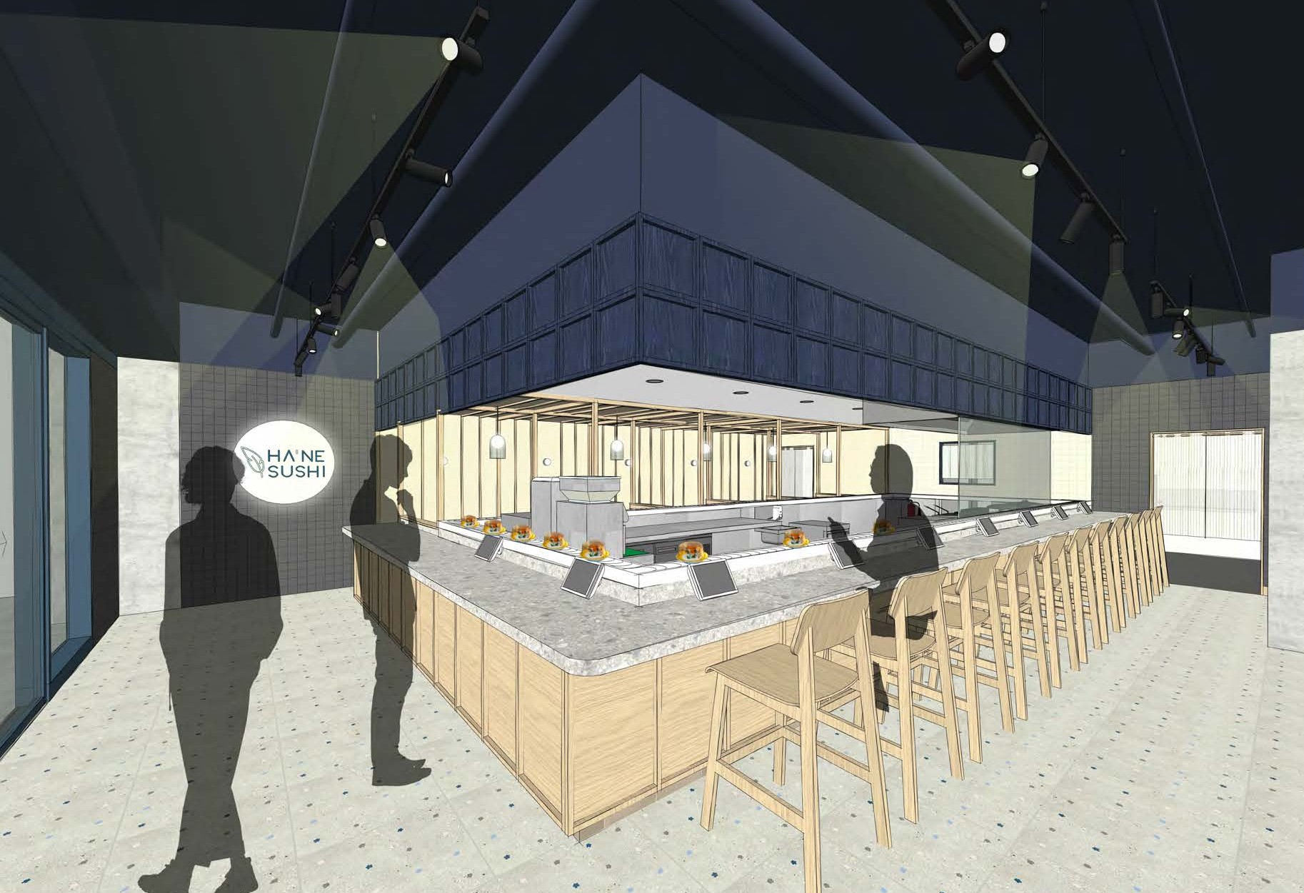 Keeping in theme with Ha'ne's signature brand, the space will feature a revolving sushi train at the centre, surrounded by timber high-top seating and benches.